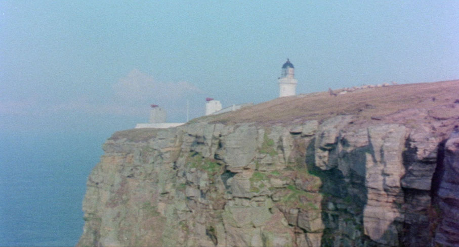 Eclipse was the second, and as it turned out final, production of London-based Celandine Productions. The first was Knots (1975), a 69-minute film of Edward Petherbridge’s play inspired by popular psychiatrist R.D. Laing’s book about the “knots” that impede human communication. Laing himself appears in the film as “man watching rehearsal”. Knots was written and directed by David I. Munro and produced by Simon Perry. With Eclipse the two men swapped roles. Eclipse was made on a small budget raised via private investment and was shot in 1976 (its copyright year) on location in Sutherland and Caithness, in the north of the Scottish mainland. The film has a credited cast of just seven, and after ten minutes, when Tom arrives at Cleo’s house for Christmas, there are just three actors on screen until the end of the film, other than in the closing minutes a brief long-shot glimpse of a lighthouse keeper (Patrick Cadell, a unit runner on Knots and for most of his career an assistant director) and a flashback to a woman (Jennie Paul) walking her dog on the beach and finding Geoffrey’s body.